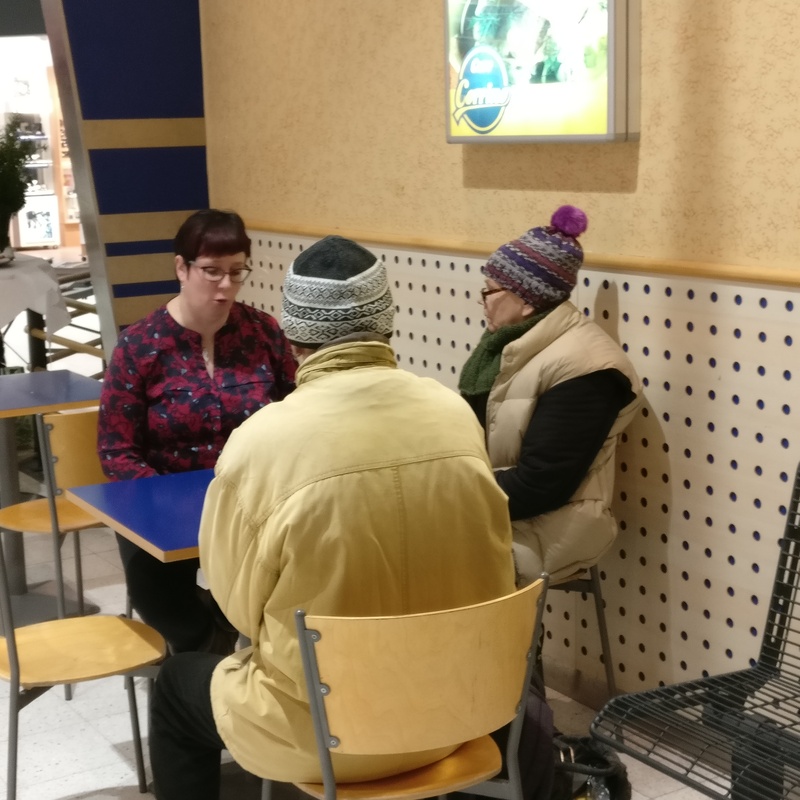 Vasemmiston presidenttiehdokas Merja Kyllönen tapasi äänestäjiä Pirkkalassa. Pirkkalan Vasemmistoliitto oli laittanut kauppakeskuksessa pöydän ns. koreaksi ja tarjosi pullakahvit kaikille kiinnostuneille. Ja mikäs oli tarjotessa, kun vieraana oli valtakunnallinen julkkis, presidenttiehdokas. Kyllönen keskusteli puolentoista tunnin ajan ihmisten kanssa monenlaisista asioista. Toisia huoletti ihan oma arjen pärjääminen, toisia maahanmuutto ja siihen liittyvät asiat. Ilmastonmuutoksen vaikutukset niin täällä Suomessa kuin muuallakin, eriarvoistuminen seurauksineen sekä turvallisuuskysymykset kaikessa laajuudessaan puhututtivat. Kyllösen selvästi muita presidenttiehdokkaita laajempi turvallisuusnäkemys sai hyväksyntää. Asevarustelua kiihdyttämällä ei tulevaisuuden uhkakuvista selvitä, vaan tilanne vain pahenee. Useissa puheenvuoroissa tuli esiin paljon julkisuuttakin saanut työttömyysturvaan vuoden alusta liitetty ns. aktiivimalli. Siihen ei ymmärrystä paikalla olijoilta paljoa löytynyt. |